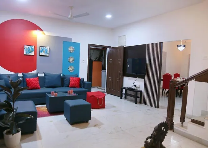 The 465 m² Row House 4 Bhk - 4 Balconies-Near Aig Hospital, Gachibowli Apartment Hyderabad offers easy entry to such city sights as the SLN Terminus, situated a mere 6 minutes' walk away. Guests can make use of Wi-Fi, complimentary private parking, car rental options.